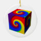 Rainbow Spiral Cube Ceramic Ornament