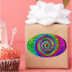 Rainbow Spiral of dots. Main colours are pink, lime green, aqua, blue, red, yellow, orange, purple and black.