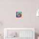 Photo of fabric dyed a bright, colourful rainbow spiral tie dye pattern.