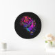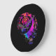 a decorative artwork of a spiral shaped seashell in all the colours of the rainbow on a wall clock.