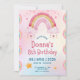 Pastel Pink Watercolor Cute Illustrative Rainbow Little kids Birthday Party Invitation