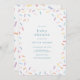 A baby sprinkle invitation features colourful rainbow sprinkles. Customise with your wording. Click "Customise further" to edit the font style, size and colour if desired.