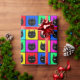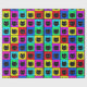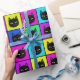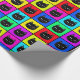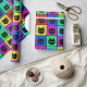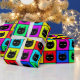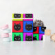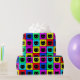 Cute and funky black cat silhouette faces on a multicoloured rainbow square background. This cartoon cat pattern is very hippie style and will make a great gift for a cat lover!