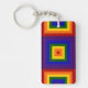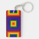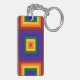 Show your love of colour with alternating geometric rainbows. A series of red, orange, yellow, green, blue, indigo, and violet squares radiate out from the centre of this festive design. On either side of the main square are halves of 2 rainbow squares with the colours sequenced in reverse order.