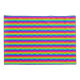 A design with different colored squares arranged into a rainbow.