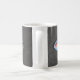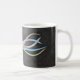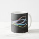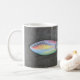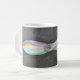 A charcoal and chalk pastel drawing of a multicoloured squid wraps around the mug.