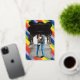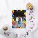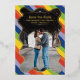 Contemporary wedding save the date card featuring a fun design with your event details in a simple layout, over your favourite photo. Your photo is inside of a hand drawn squiggle frame that is over a rainbow background. All design elements on the front are in real foil and the back is black and white. The foil on the front may be changed to ink and the back may be changed to any colours you choose in the design editing tool. The organic shape of the wavy frame and the vibrant rainbow colours makes this save the date card a great choice for a modern wedding.