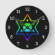 This rainbow gradient beneath the black Star of David is created from pure shades of red (FF0000), yellow (FFFF00), lime green (00FF00), aqua or cyan (00FFFF), blue (0000FF) and magenta (FF00FF). If you'd like to add a custom text message try using those six-digital hexadecimal values and check the results.