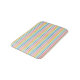 Stylish bath mat, done in a colourful blue, white, pink, yellow, aqua, and blue striped pattern. Customise it, to add any text you want. Comes in three sizes.