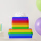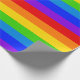 A seamless, continuous roll of seven colour rainbow stripes wrapping paper in the seven rainbow colours of red, orange, yellow, green, blue, indigo, violet, also known as RoyGBiv and roygbiv. Longest roll is 15 feet, rolls longer are printed in multiple rolls of 15 feet.