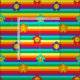 Vibrant rainbow colours striped fabric with cute daisy flowers with smiling faces