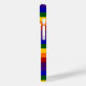 Red, orange, yellow, green, blue, indigo, violet: the colours of the rainbow are presented in vertical stripes in this design. The festive rainbow sequence repeats across the design.