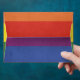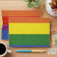 Colours of LGBT (lesbian, gay, bisexual, and transgender people) rainbow flag pride decoration on striped background