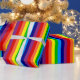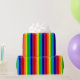 Use this bright wrapping paper to present gifts for just about any occasion. The design features a vertical stripe pattern in vivid rainbow colours.