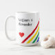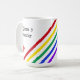Colourful stripes and hearts decorate this large "Love Coffee Mug." Personalise the style of your text to make this a special mug for your friend. Add names and dates if you like. Choose a formal script or "Fun" and lighthearted font. This customised mug will make a great gift for valentine's day, birthday or any special day for anyone at any age.