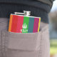 The flask itself is fine. It’s a cheap flask, obviously bought in bulk, however am prepared to overlook that. Given that it is a personalized item, I would have liked to have seen gift boxing instead of the generic packaging. Terrible printing, and/or quality. It’s a cheap, tacky vinyl. It is not cut straight and is also applied in a way that it is overhanging the bottom, causing the glue to catch on items and it will eventually roll and tear, damaging the wrap.