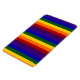 Red, orange, yellow, green, blue, indigo, violet: the colours of the rainbow are presented in vertical stripes in this design. The festive rainbow sequence repeats across the design.