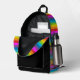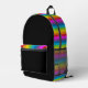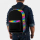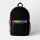A customisable backpack with all the colours of the rainbow and pink! This colourful, striped pattern can be moved, deleted, and adjusted in size on any panel. I've chosen a black background colour, but you can pick any colour you prefer to make this backpack just right for you or as a gift. You can also add a name, monogram, or other text. Great for school, travel, and more!