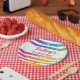 Looking for unique and Rainbow Stripes Personalised Name Year Birthday Paper Plates? Grab these trendy paper plates and personalise the text in the centre of the circle. Perfect for any age birthday party tableware or any celebration! Coordinates with the rainbow heart balloons birthday party invitations. Contact us for more coordinating party supplies!