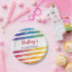 Rainbow Stripes Personalised Name Year Birthday Paper Plate