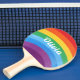 Colourful retro rainbow striped ping pong paddle. Rainbow patterned paddle with your name. Girls customisable rainbow ping pong paddle. Girls trendy rainbow ping pong paddle. Pride rainbow paddle. Customisable pride rainbow paddle. Fun, colourful, ping pong paddle.