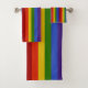 Brighten up your space with these Colourful towels that feature a pattern of vertical rainbow stripes.