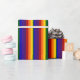 Red, orange, yellow, green, blue, indigo, violet: the colours of the rainbow are presented in vertical stripes in this design. The festive rainbow sequence repeats across the design.