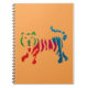 Colourful jungle art of an original illustration design of a rainbow stripey tiger. This cute illustration art of a jungle theme is bright and vibrant and funky.