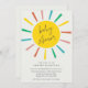 A Rainbow Sun Script Modern Baby Shower Invitation with colourful sunshine and handwritten script. Click the edit button to customise this design with your details.