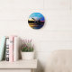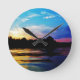 Rainbow sunset on mountain Lake Round Clock