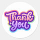 Say thanks in style with this vibrant "Thank You" sticker featuring a playful rainbow outline and cheerful pink and purple lettering. Perfect for packaging, party favours, or adding joy to any note or gift.