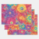 Rainbow Tie Dye Wrapping Paper Flat Sheet Set of 3