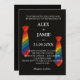 Rainbow Tie Gay Couple Modern Black Wedding Invitation