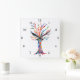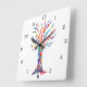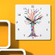 This whimsical clock is decorated with a print of a Tree Of Life design in rainbow colours.