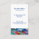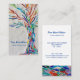 This decorative business card features a print of a rainbow coloured tree on a pale grey background.