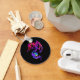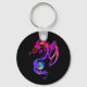 a colourful tribal tattoo design of a mythical dragon or lizard with wings in all the colours of the rainbow on a black keychain.