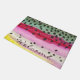 This unique Welcome Doormat features just the skin of the Rainbow Trout with all of its beautiful colors. For any fisherman or ichthyologist familiar with this gorgeous fish, there is no need to see the whole fish to identify it. This trout art is from an original watercolor painting by Doug Shultz. ----- Makes a great one-of-a-kind gift for those who love fly fishing, ichthyology, fish in general and trout specifically - housewarming, Christmas, Birthday, Father's Day, Mother's Day, Retirement, ANY day. ----- Great for home decor, office, shop, store, cabin, lodge, bed and breakfast, restaurant - ANYWHERE people speak the language of fish. ----- This same fish art is available on hundreds of other items, too. And, this welcome mat is also available with the skin of the Brown Trout, salmo trutta; and, with the Rainbow Trout, oncorhynchus mykiss.