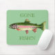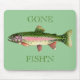 "GONE FISH'N" MOUSE PAD WITH A RAINBOW TROUT. COLORED PENCIL DRAWING BY LARRY SIMONS.