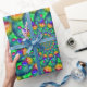 Funky rainbow and turquoise spiral fractal art pattern. This pattern is very psychedelic hippie style with its bright eyecatching colours.