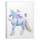 Rainbow coloured unicorn with surrounding matching butterflies lined notebook. Background colour can be easily changed with the "edit" drop down menu to the right