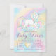 Unicorn baby shower invitations with adorable pastel unicorn on a beautiful watercolor rainbow background. These unicorn baby shower invitations are easily customised for your event by simply adding your details. You can move the heart and lines as needed.