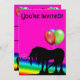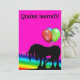 A bright, bold and beautiful unicorn themed birthday invitation featuring a black mystical unicorn, balloons and a rainbow background. The perfect birthday card for your unicorn lover!