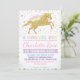 Rainbow Unicorn Birthday Invitation Pink Gold