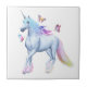 Rainbow hued unicorn surrounded by butterflies of matching colours ceramic tile
