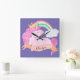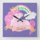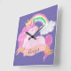 🌈Rainbow Unicorn Custom Name Square Wall Clock