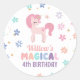 Rainbow Unicorn Girl Birthday Favour Round Sticker