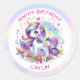 Rainbow Unicorn Girl's Birthday Party Personalized Classic Round Sticker