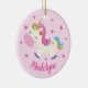 Rainbow Unicorn Glitter Christmas Pink Name Ceramic Ornament