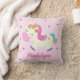This unicorn pillow features a cute whimsical unicorn and hearts design with faux gold glitter on a pastel pink background. The design is the same on both sides of the pillow. Personalise it with a name.