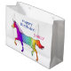 Beautiful rainbow unicorn birthday gift bag. Happy birthday gift bag with a colourful unicorn. Add kids name and make this bag personal. Great for children who love unicorns, especially girls.